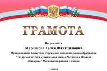 Марданова Галия Фазлтдиновна приняла участие в Международном конкурсе профессионального мастерства "Педагог дополнительного образвания" Особенности музыкального обучения детей с ОВЗ и заняла призовое 1 место!