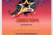 Мухаметзянов Вильдан, преподаватель Хакимова Лилия Атласовна, в номинации "Общее фортепиано" стал Лауреатом 3 степени.