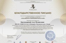 Преподаватель нашей школы Биктимирова Алсу Исмаиловна стала Лауреатом 1 степени в номинации "Фортепиано. Профессионал" и получила Благодарственное письмо.