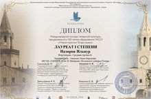 Назиров Ильнур – Лауреат 1 степени в номинации «Фортепиано», преподаватель Еникеева Элина Фаридовна.