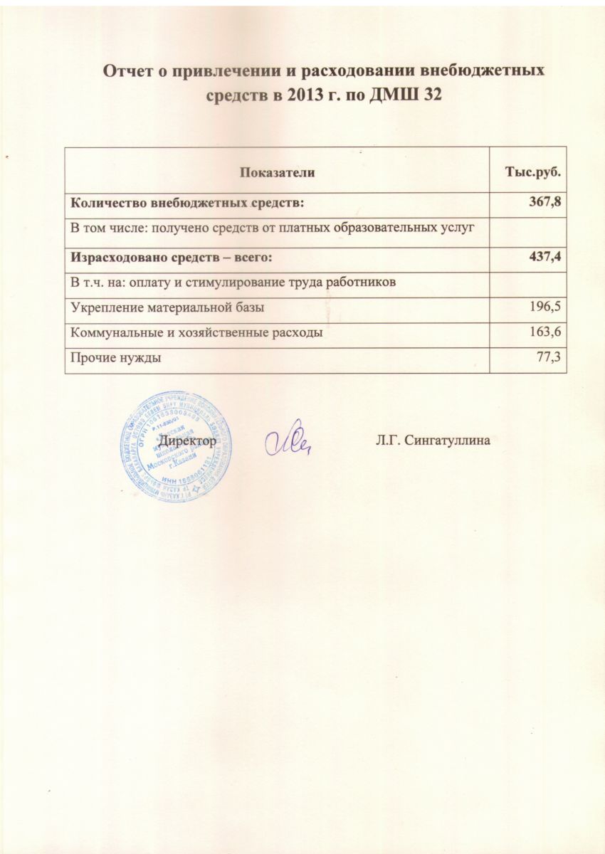 Отчёт о привлечении и расходовании внебюджетных средств за 2013 год