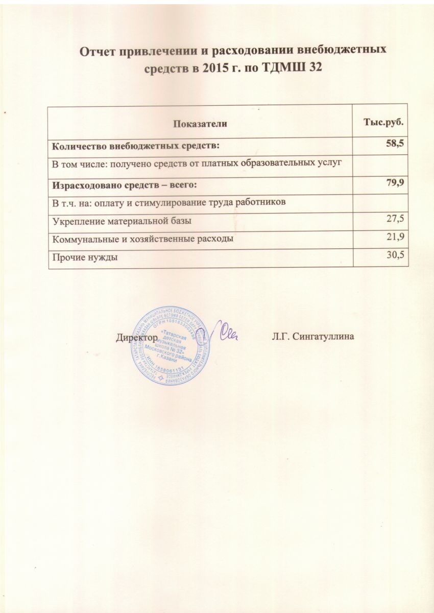 Отчёт о привлечении и расходовании внебюджетных средств за 2015 год