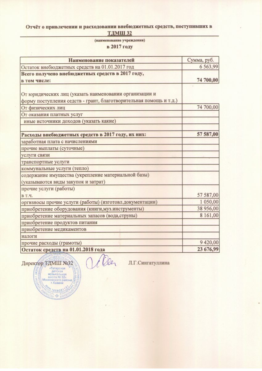 Отчёт о привлечении и расходовании внебюджетных средств за 2017 год
