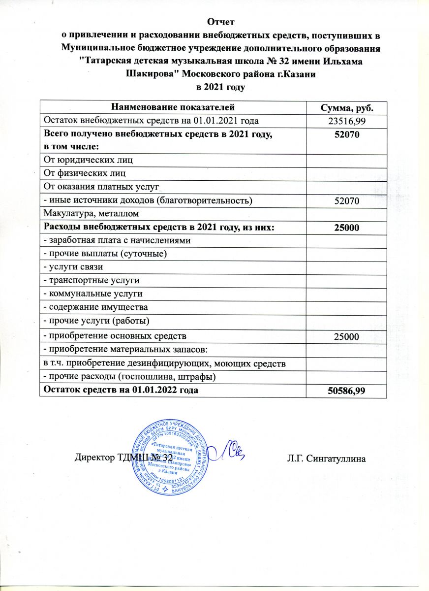 Отчёт о привлечении и расходовании внебюджетных средств за 2021 год