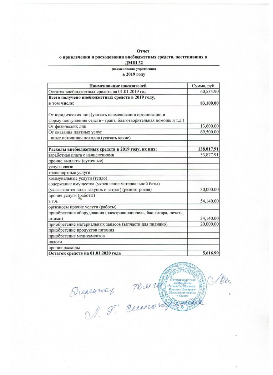 Отчёт о привлечении и расходовании внебюджетных средств за 2019 год