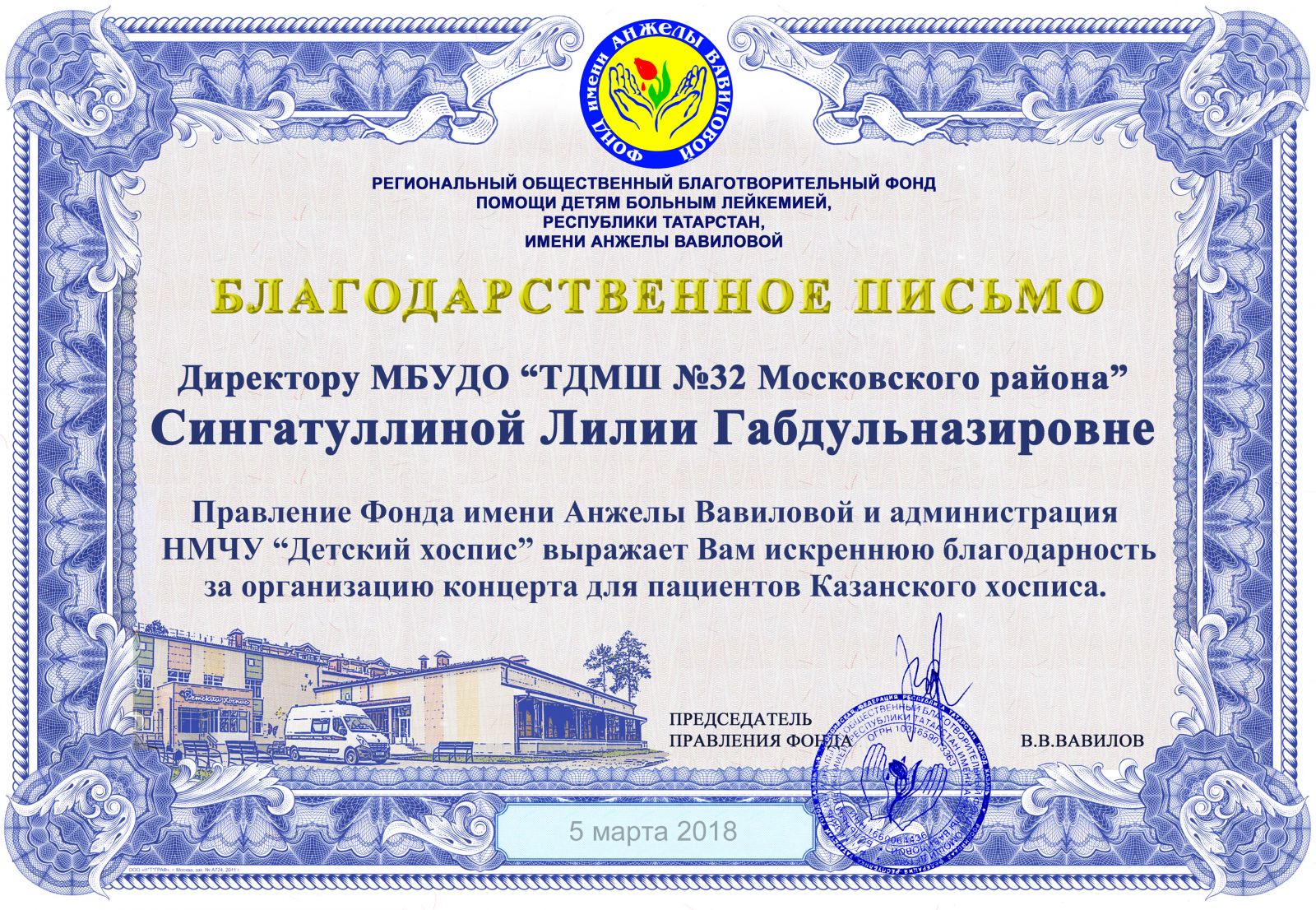 Благотворительный концерт в Хосписе Фонда им. А.Вавиловой: Приказ, Благодарность Фонда
