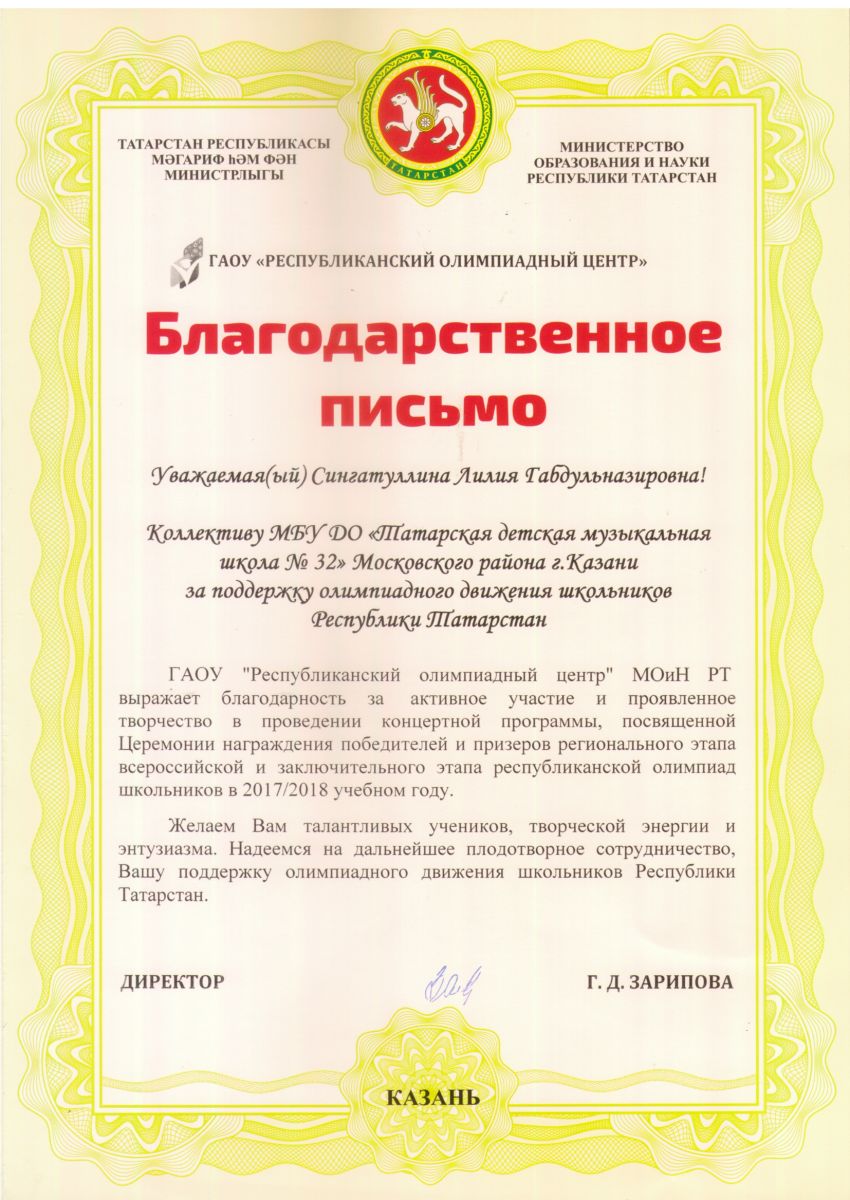 Муниципальное бюджетное учреждение дополнительного образования «Татарская детская музыкальная школа № 32 имени Ильхама Шакирова" Московского района г. Казани