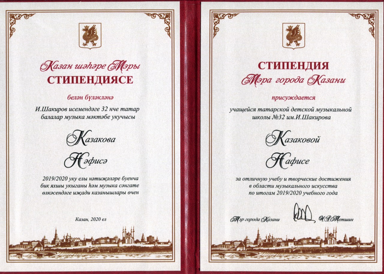 Казакова Нафиса 2020 год (фортепиано, кл. преп. Гараевой И.Р.)