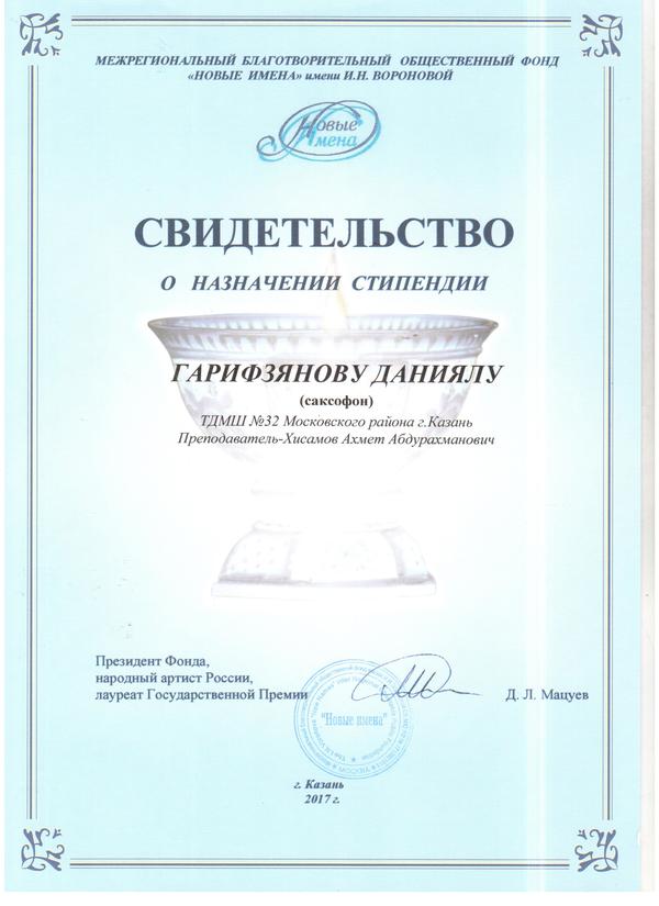 Гарифзянов Даниял 2017 год (саксофон, кл.преп. Хисамова А.А.)