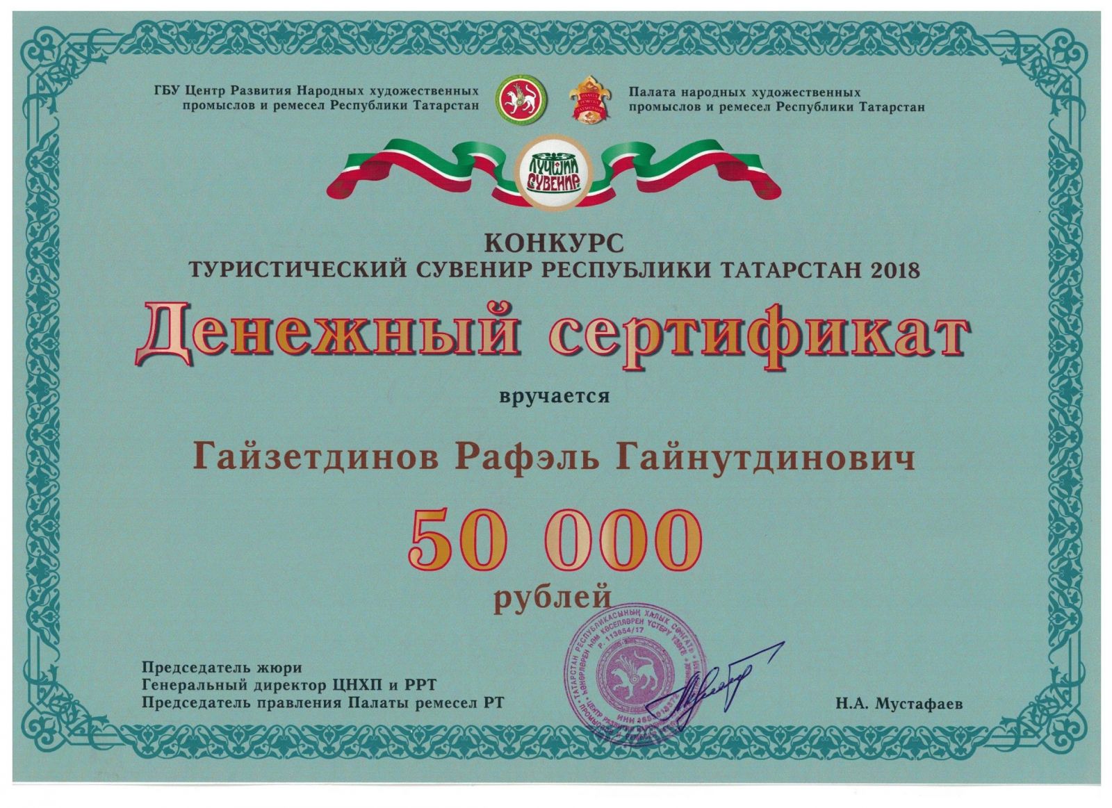 2018 Гайзетдинов Рафаэль Гайнутдинович Денежный сертификат