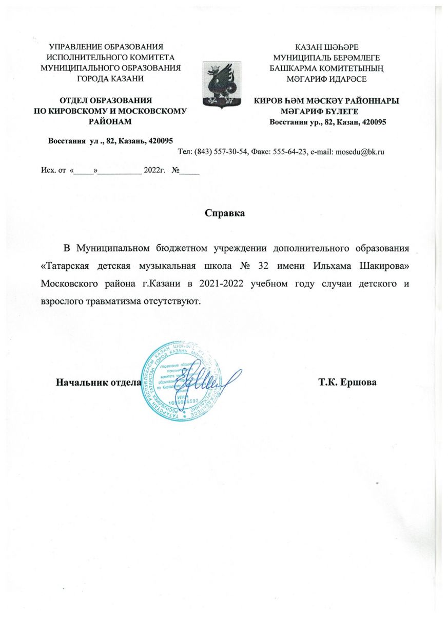 Справка об отсутствии детского и взрослого травматизма в учреждении