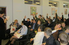 Историки клуба, рассказали и продеманстрировали нам военную форму и оружие I и II мировых войн, в которых принимала участие наша страна. Так же мы узнали, как развивалось и изменялось боевое оружие времен войны, кто были их создатеоями. Как видоизменялась форма для солдат, тонкости использования ее в бою и рядовой носке. Воспитанники с интересом слушали и задавали массу вопросов, смогли так же примерить форму и почувствовать на себе тяготы всего обмундирования солдат, остались очень довольны встречей.
