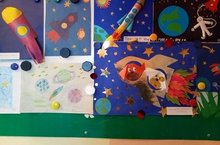 Сегодня большой праздник - 60 лет первому полету человека в космос. К этому дню мы сняли свой видеоролик с участием наших воспитанников и показали его всем нашим детям. Также в фойе оформили выставку поделок и рисунков о космосе. Эта неделя посвящена космосу и называется она "Космическая неделя".