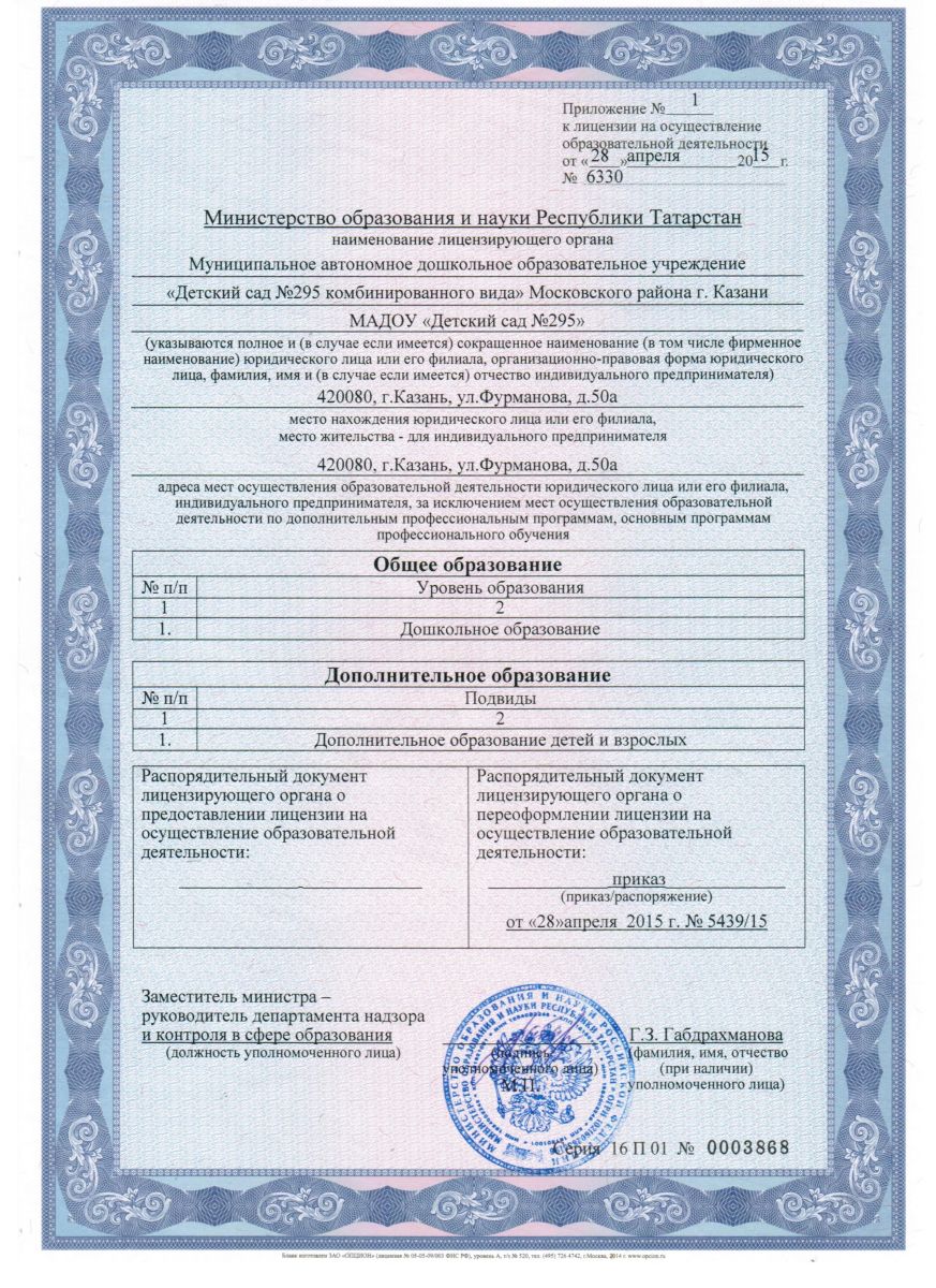 Короткое название: МАДОУ "Детский сад №295"