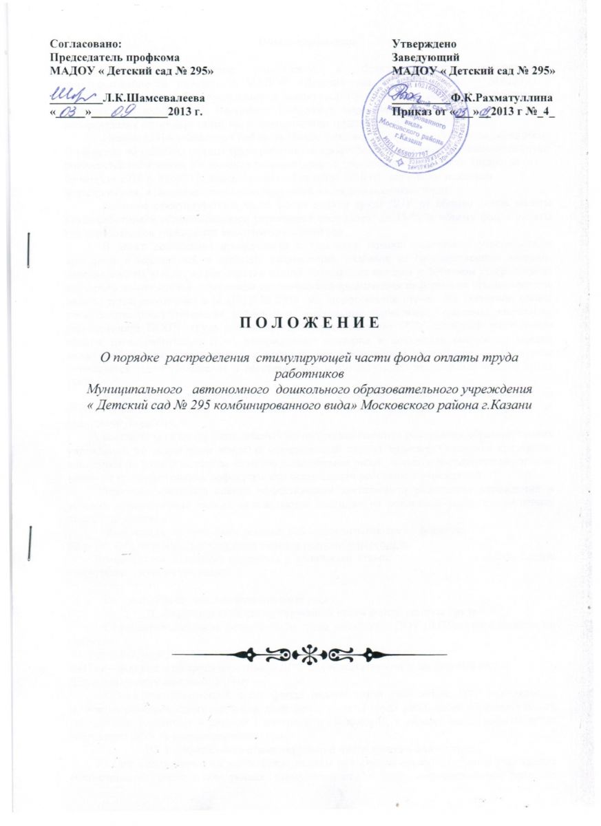 Положение о порядке распределения стимулирующей части фонда оплаты труда работников