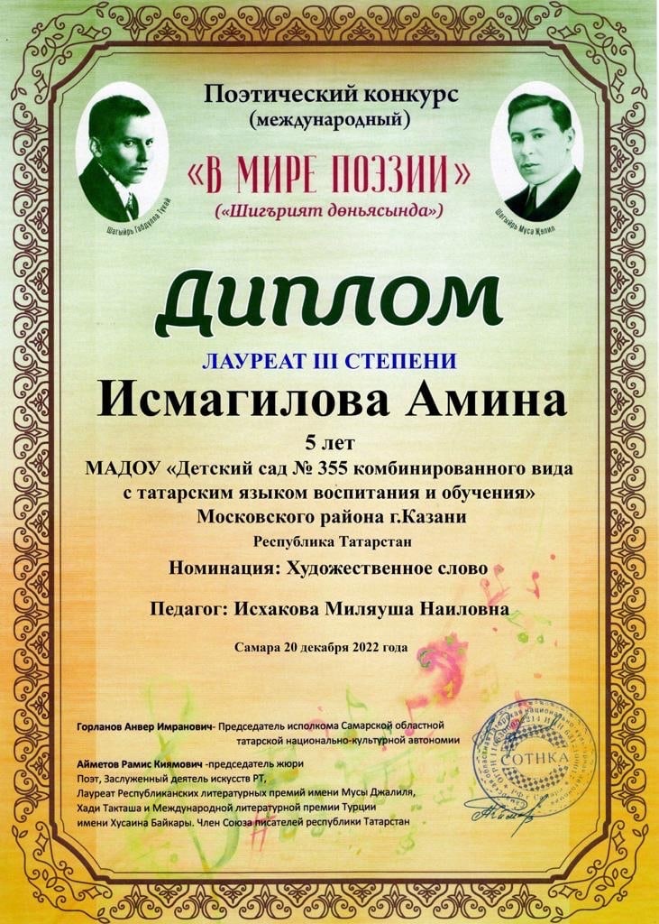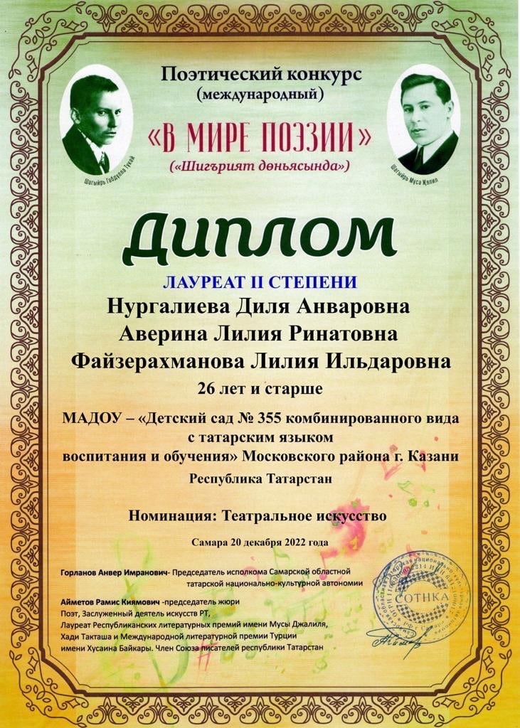 Поздравляем победителей Международного поэтического конкурса «В мире поэзии» («Шигърият дөньясында»).