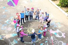 Много интересных событий происходит летом в нашем ДОУ. Так 14 августа педагоги детского сада порадовали ребят увлекательными конкурсами и играми. Особенный восторг у детей вызвал конкурс рисунков на асфальте «Мы рисуем этот мир». Ребята нашего детского сада очень любят рисовать. Детвора с энтузиазмом взялась за разноцветные мелки, и уже через несколько минут площадь перед детским садом заиграла яркими красками детских рисунков.