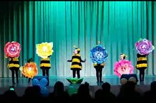 Василиса, Арина, Элина, Камиля, Диана, Таня и Сабина красиво, артистично исполнили номер "Пчелки" и были награждены дипломами и мягкими игрушками. Украсили номер оригинальные объемные цветы, изготовленные педколлективом детского садика.