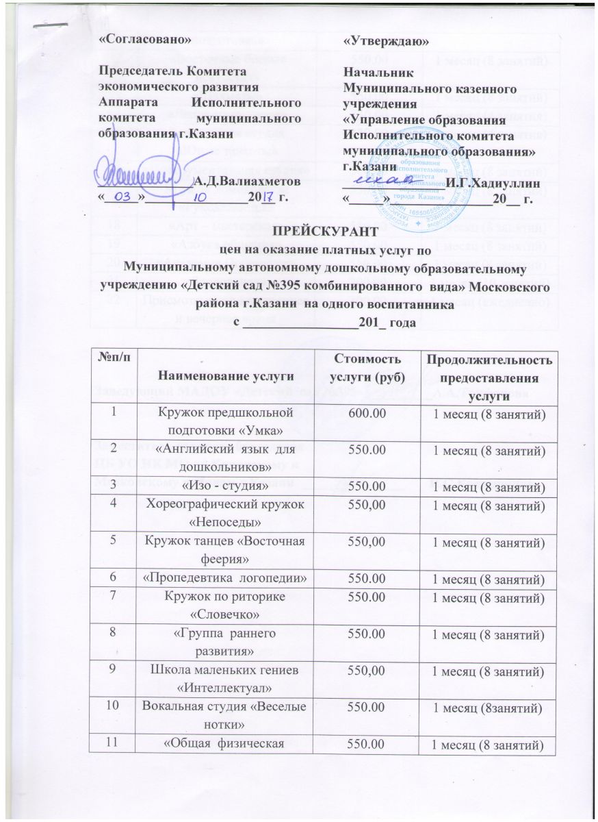 Прейскурант цен на оказание платных услуг 2017-2018 г, лист 1 jpg
