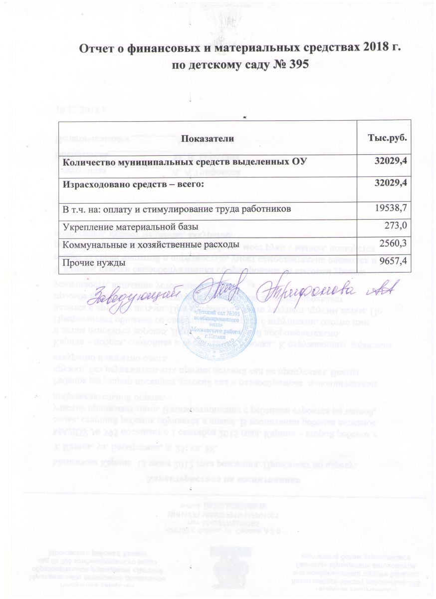 Отчет о финансово-хозяйственной деятельности МАДОУ 395 за 2018 год