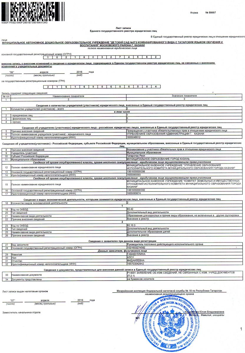 Короткое название: МАДОУ "Детский сад №372" Московского района г.Казани
