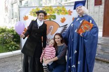 Сегодня в нашем детском саду детей и родителей встречали сказочные персонажи Шапокляк и Добрый учитель.