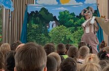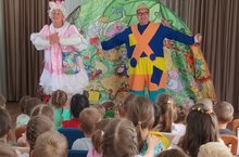 В конце дети подарили громкие аплодисменты актёрам, а актёры поблагодарили ребят за внимание и участие!