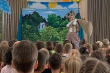 В нашем детском саду состоялся показ кукольного спектакля театра « Акварелька». Название постановки «Волк и лиса» , по мотивам русской народной сказки ». В процессе спектакля герои общались со зрителями, задавали им вопросы из которых делали правильные выводы, что определяло ход дальнейших действий героев,.