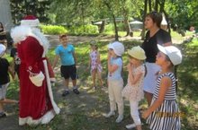Сегодня в гости к ребятам нашего детского сада, приходил Дед Мороз со своей внучкой Снегурочкой, с подарками и веселыми играми! Ребятки рассказали Деду Морозу, что такое лето, научили играть в летние игры. Дедушке Морозу очень понравилось у нас и он пообещал обязательно прийти на праздник новогодней елочки зимой!