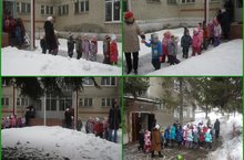 Вот так сегодня ребятки провожали зимушку - зиму с традиционными гуляниями, хороводами, шутками, играми, песнями, плясками и состязаниями. Ребята перетягивали канат, катались на ленточной каруселе, играли снежками. Природа в одижании прихода Весны-красны сняла с себя снежный покров и радовалась вместе с ребятами и взрослыми. А в конце Масляница угощала традиционным масляничным лакомством - румянными блинами!