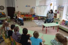 Сегодня в нашем детском саду в рамках проекта Школа принятия Городским центром образования Казани проведены уроки доброты. Е.Егорова и Н.Сиянчук провели душевную и познавательную беседу с ребятами специализированных групп. «Уроки доброты»: – демонстрируют приспособления и условия, позволяющие людям с инвалидностью вести обычную самостоятельную жизнь. Было очень интересно и позновательно!
