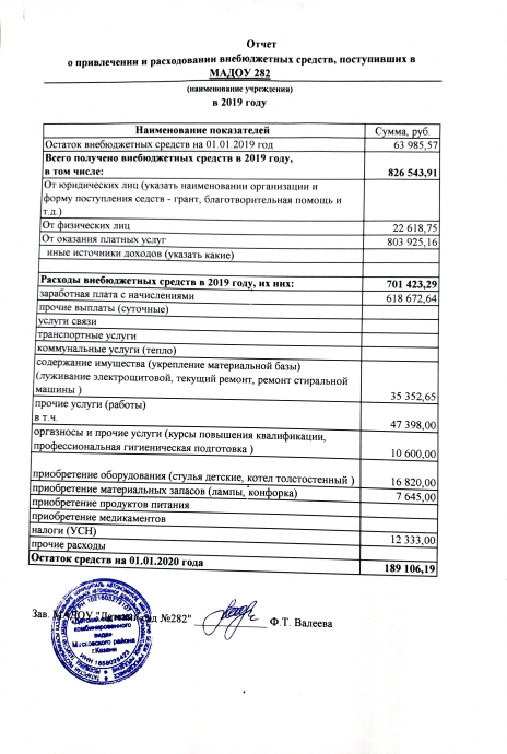 Отчет о привлечении и расходовании внебюджетных средств за 2019 г.