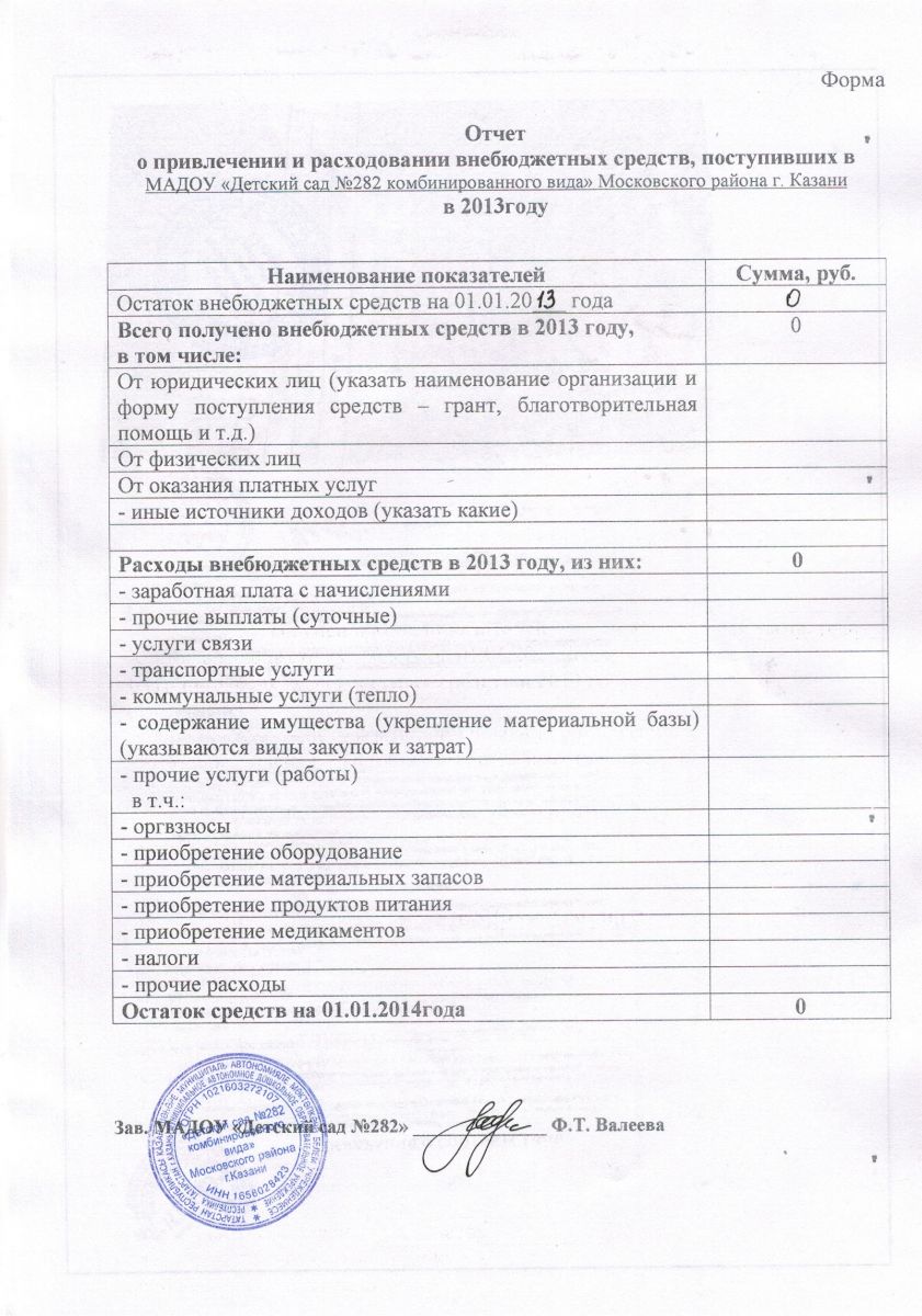 Отчет о привлечении и расходовании внебюджетных средств за 2013 г.