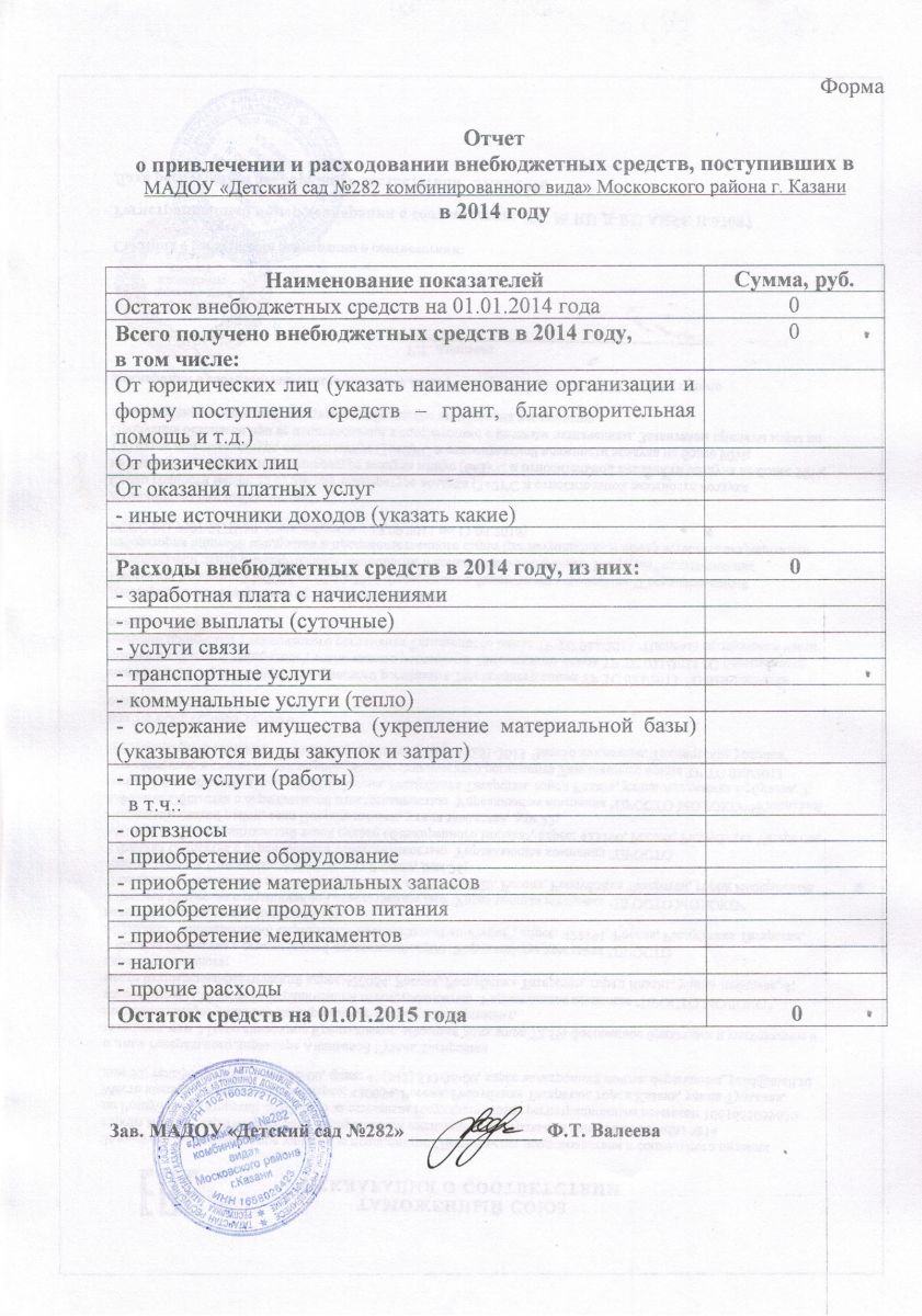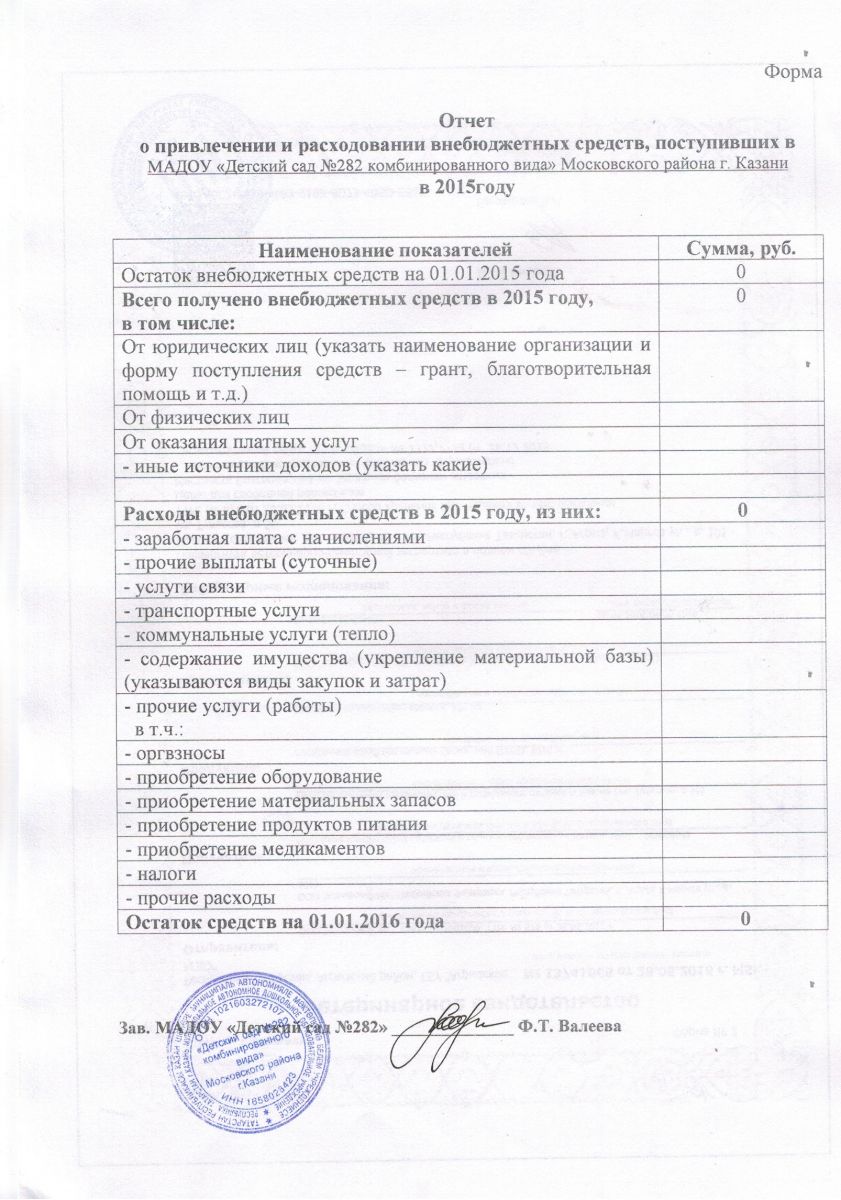 Отчет о привлечении и расходовании внебюджетных средств