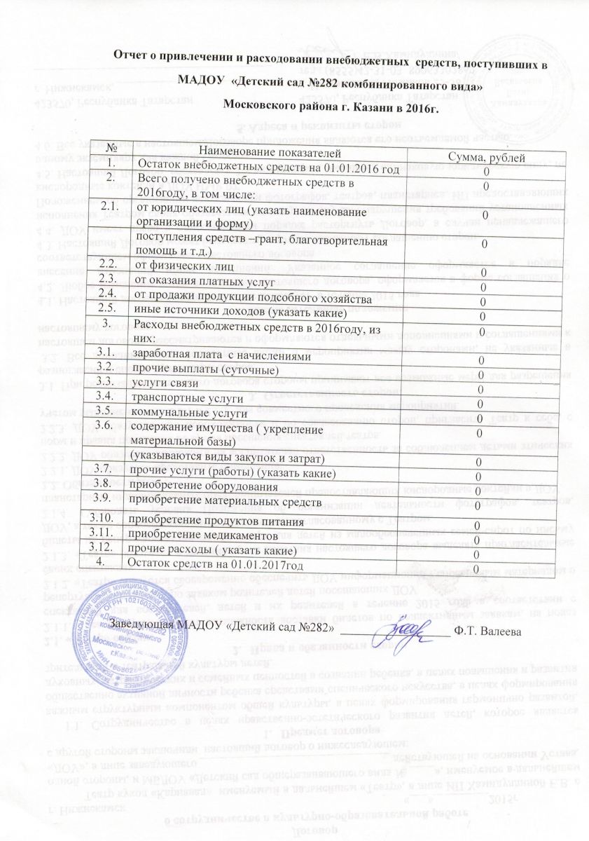 Отчет о привлечении и расходовании внебюджетных средств за 2016 г.