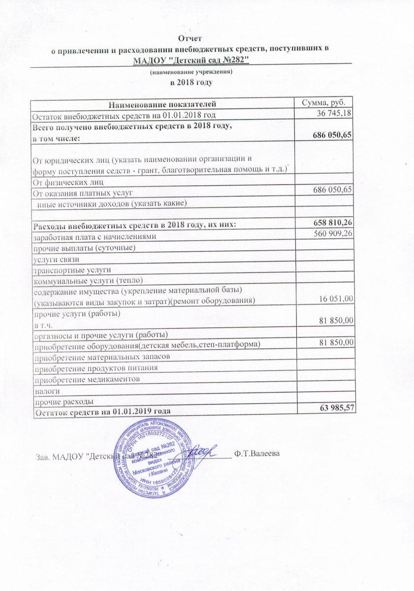 Отчет о привлечении и расходовании внебюджетных средств за 2018 г.