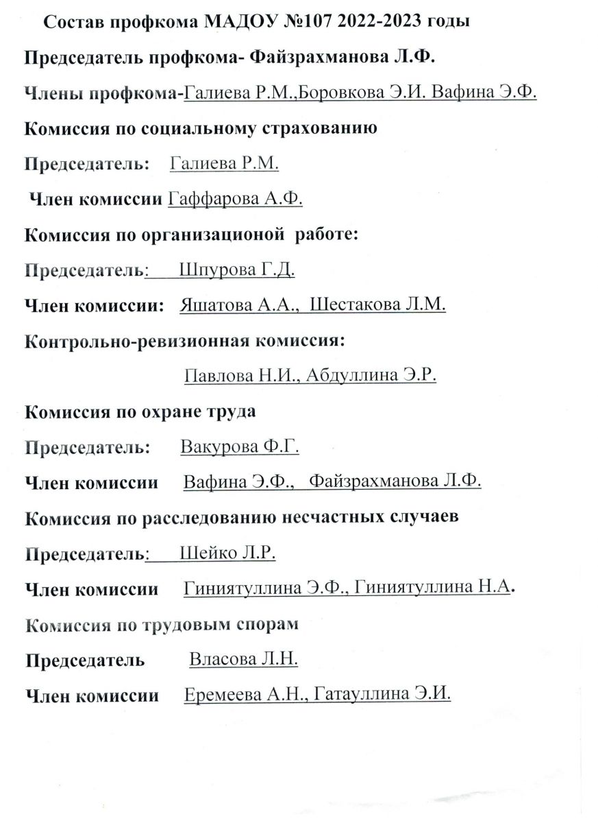 Состав профкома: Вафина Э.Ф., Боровкова Э.И., Галиева Р.М. Состав профкома МАДОУ №107 2022-2023 уч.год