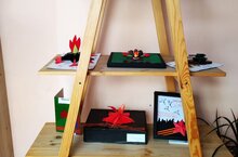 В холле первого этажа проходит выставка рисунков и поделок, посвященная «9 Мая»