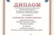 Победа в районном конкурсе "Лучшая игра по здоровьюсбережению в ДОУ" 08.02.2016