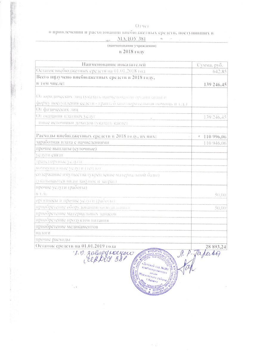 Отчет о привлечении и расходовании внебюджетных средств,поступивших в 2018 г
