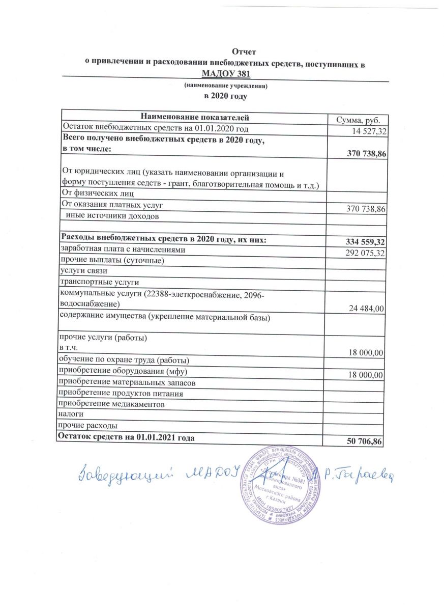 Отчет о привлечении и расходовании внебюджетных средств, поступивших за 2020 г.