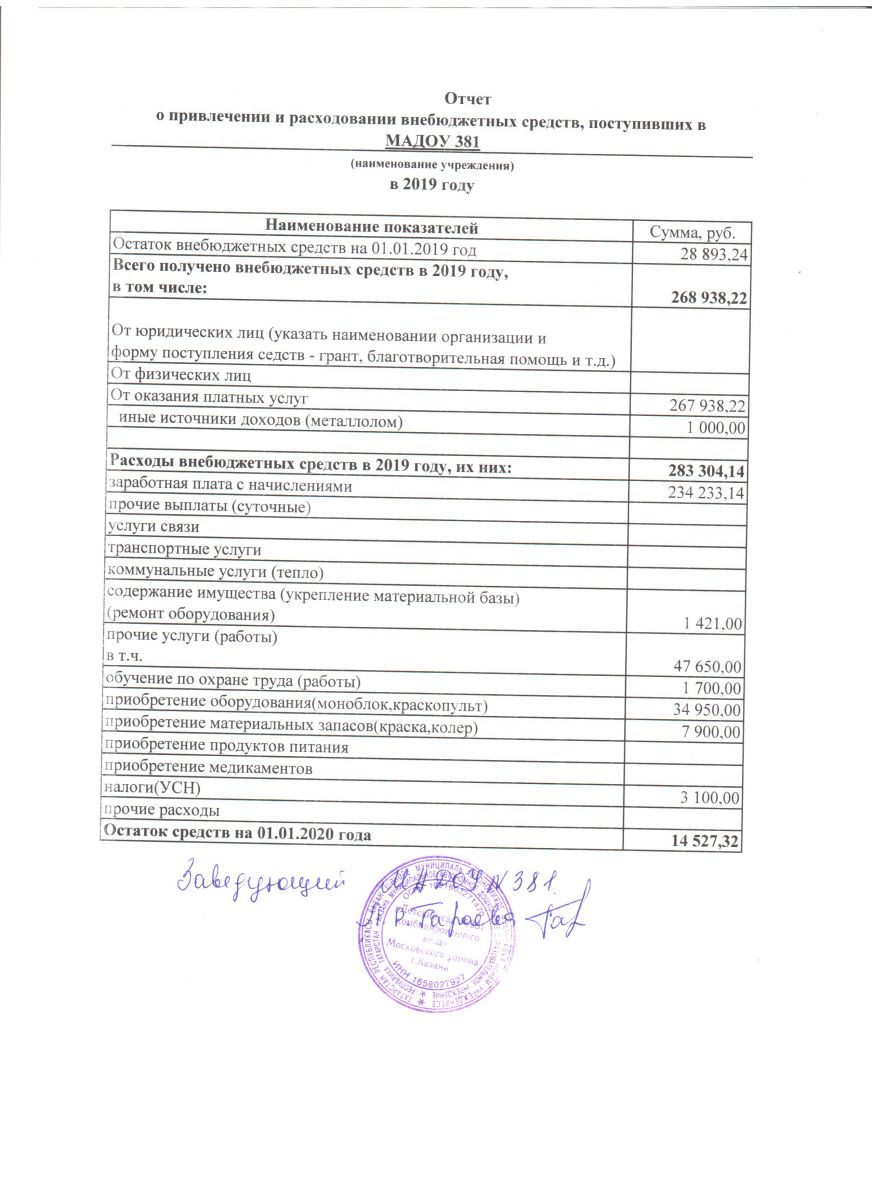 отчет о привлечении и расходовании внебюджетных средств,поступивших в 2019г.