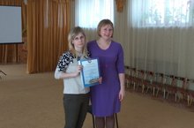 Заведующая ДОУ Степанова А.С. наградила воспитателя Кадырову Р.И. грамотой за I место в районном конкурсе "Копилка дидактических игр по обучению дошкольников двум государственным языкам РТ" в номинации "Оригинальная игра".