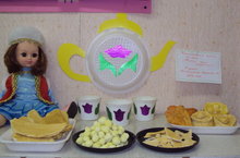 В нашем саду прошло итоговое мероприятие по проекту "Продукты питания" коллективная работа воспитателя Кадыровой Р.И с детьми подготовительной группы №4 ( лепка из соленого теста) "Угощение татарского народа" .
