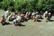 В День защиты детей в деском саду прошел конкурс детских рисунков на асфальте.