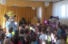 Сегодня в детском саду театр ростовых кукол показал постановку на тему пожарной безопасности "Спички детям не игрушки".