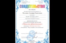 Воспитатель Муллина Э.Р. награждена свидетельством за участие во всероссийском конкурсе презентаций "Прилив фатазии". Тема работы : "Мир и порядок в моём организме".