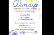 Воспитанница детского сада Сабирова Сифина заняла 1 место по г.Казани с рисунком "Тюльпан", воспитатель: Давлетшина Л.А.;