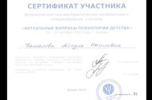Педагог-психолог детского сада Камалова А.Н. приняла участие во всероссийской научно-практической конференции с международным участием "Актуальные вопросы психологии детства".