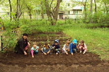 В ДОУ активно ведется работа по ознакомлению детей с огородом. Дети группы №5 совместно с воспитателями сажают горох.